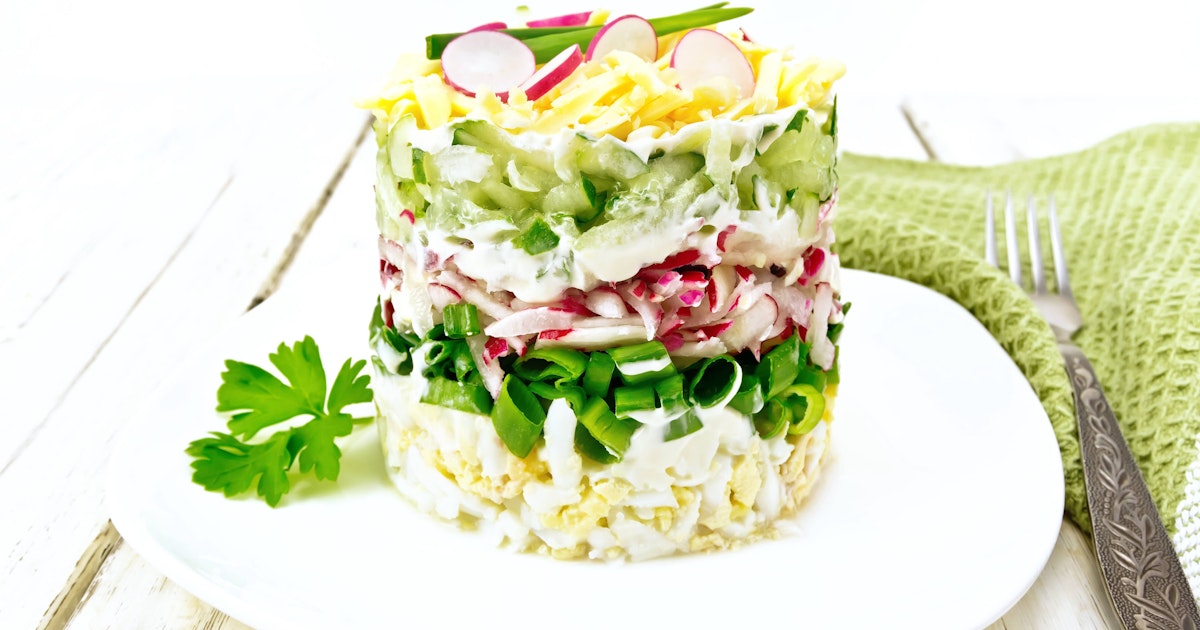 Schichtsalat Klassische Art Mamas Rezepte Mit Bild Und Kalorienangaben