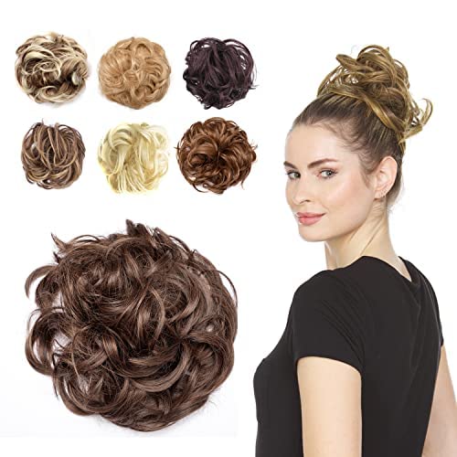 קנו יופי וטיפול אישי Juvabun Messy Bun Hair Piece Medium Brown Hair Pieces For Women Men Messy Bun Hair Piece Synthetic Hair Everyday Wear Washable Realistic